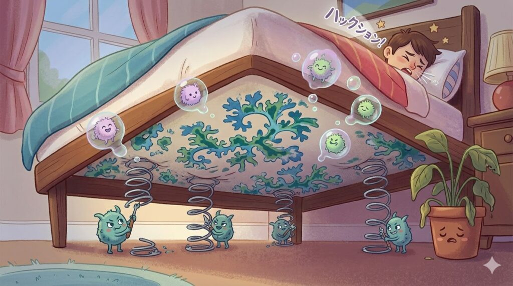 風邪だと思って休んでいても、その「休んでいる場所」である寝具に原因があるため、なかなか回復しないという皮肉な状況が起こり得ます。