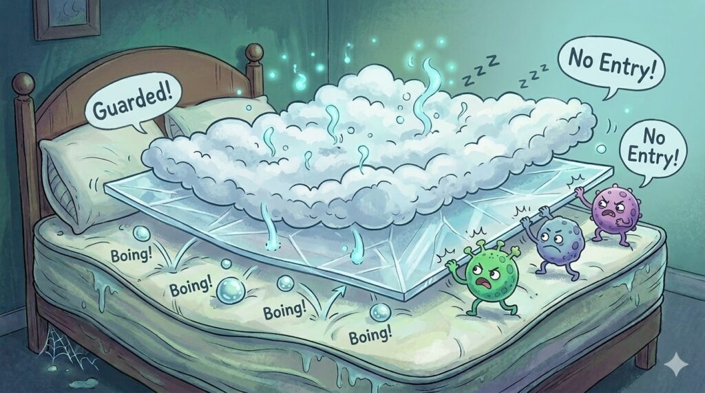最後に、お気に入りのマットレスを見つけたら、ぜひセットで検討してほしい高性能な対策アイテムについても触れておきますね。