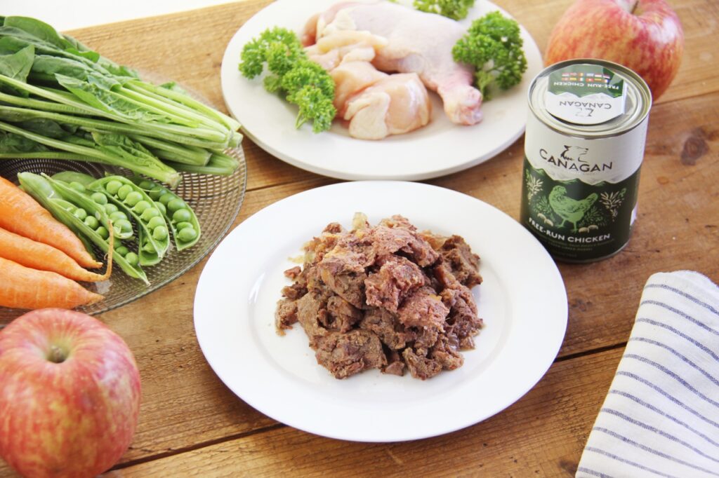 実際にカナガンのウェットフード(チキン)は、新鮮なチキンをたっぷりと使用し、サツマイモやブロッコリーといった野菜やフルーツもバランス良く配合されています。