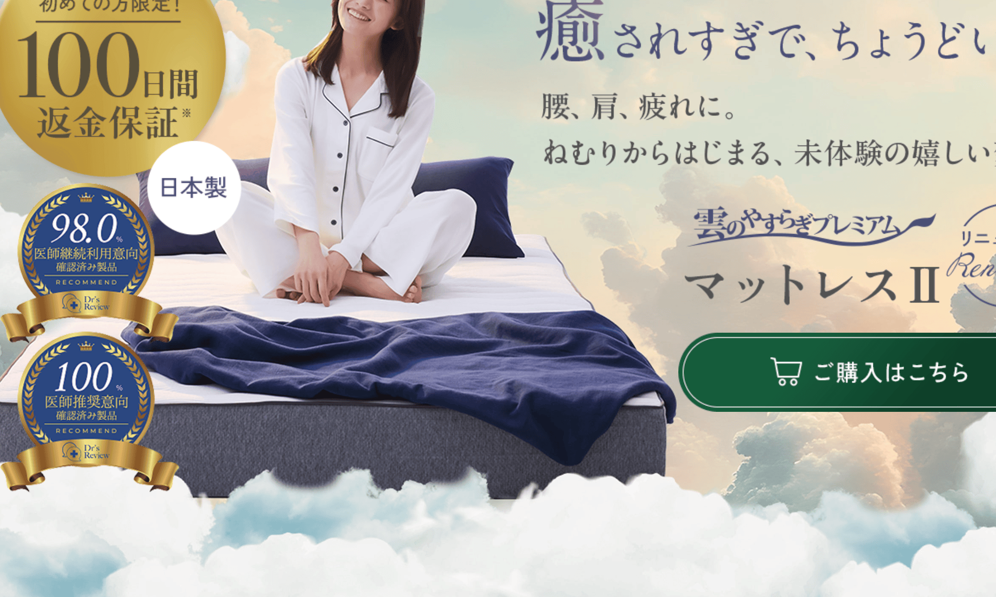 まず、この保証の対象となるのは、「雲のやすらぎプレミアム マットレスⅡ」を初めて購入する方限定です。