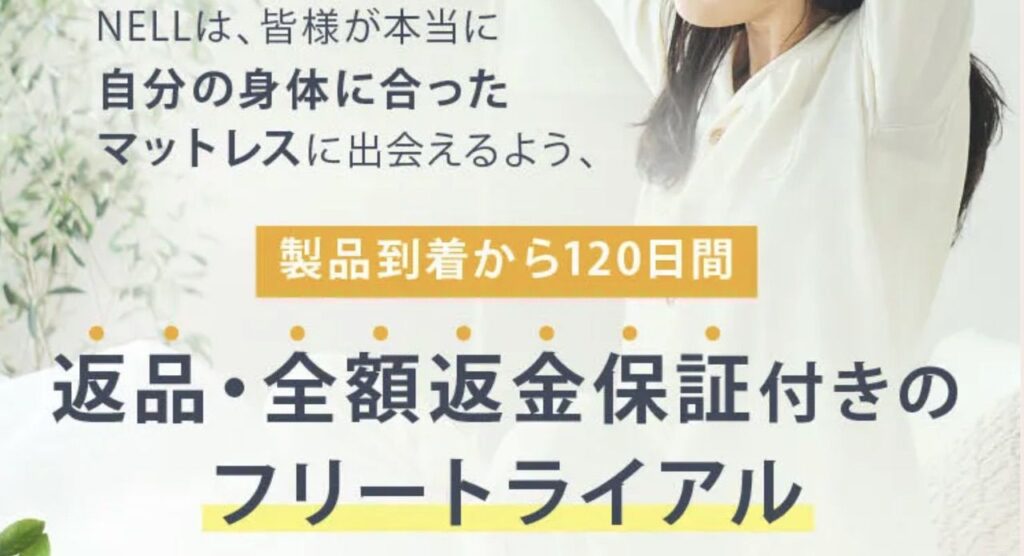 そこで活用したいのが、NELLマットレスの最大の強みである「120日間フリートライアル」です。